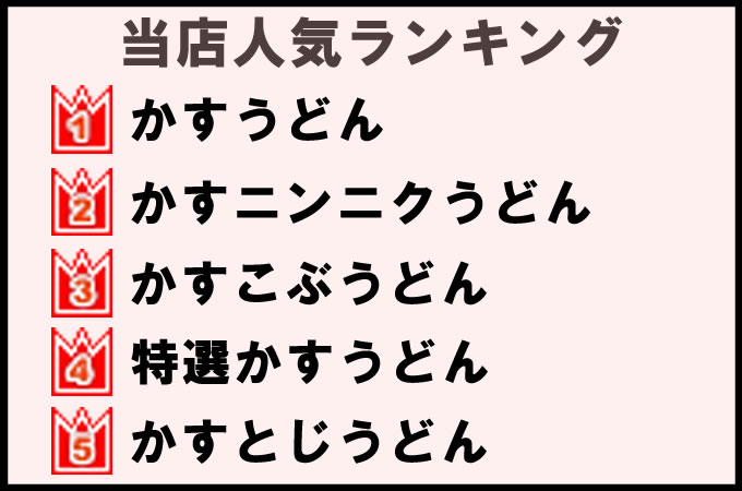 |かすうどんとは|実店舗メニュー|通信販売|アクセス|冷凍自販機|特定商取引法に基づく表記|FC2店|